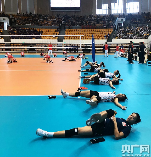 女排隊(duì)員賽前熱身