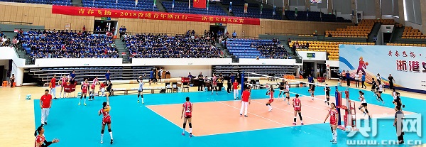 活動(dòng)下午,浙港女排友誼賽在浙江工商大學(xué)舉行。香港立法會(huì)前主席、浙聯(lián)會(huì)榮譽(yù)會(huì)長(zhǎng)為賽事開球,近一千名香港青年和在杭學(xué)生觀看比賽。
