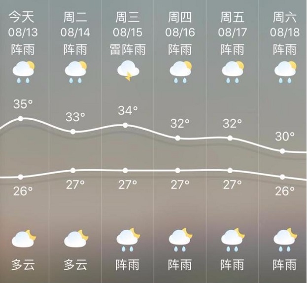 好消息是,本周由于雨水的光顧,氣溫有所下降,但濕度依舊很高,避不開“濕嗒嗒”。
