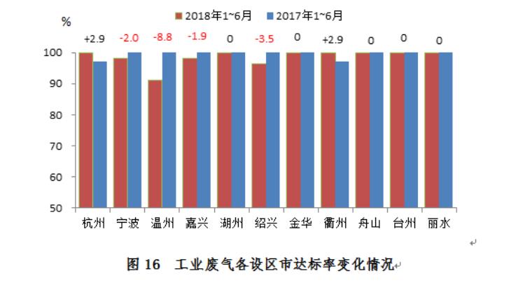 各設(shè)區(qū)市中,溫州、衢州和麗水達(dá)標(biāo)率持平;杭州、紹興和舟山有所上升,其余各市均有所下降。