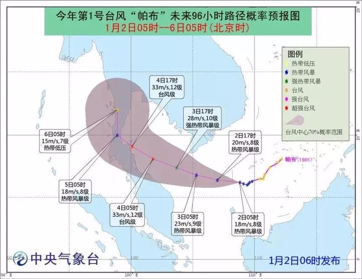 另外,不經(jīng)意間,2019年的臺風(fēng)季悄悄拉開了序幕!中央氣象臺確認(rèn)今年第1號臺風(fēng)在2019年1月1日當(dāng)天生成!它叫"帕布",在老撾語中意為"大淡水魚"。但這枚臺風(fēng)不會直接影響我國。預(yù)計,"帕布"將以每小時15公里左右的速度,向偏西方向移動,強度逐漸加強。1月3日以后"帕布"將轉(zhuǎn)向西北方向移動并趨向馬來半島北部沿岸。因此提醒近期去泰國、越南的朋友,要注意關(guān)注天氣情況。(記者 陳鋮 設(shè)計 張源)