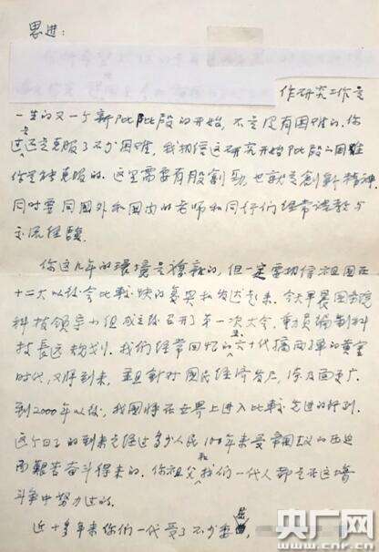 錢(qián)三強(qiáng)寫(xiě)給兒子錢(qián)思進(jìn)的家書(shū)