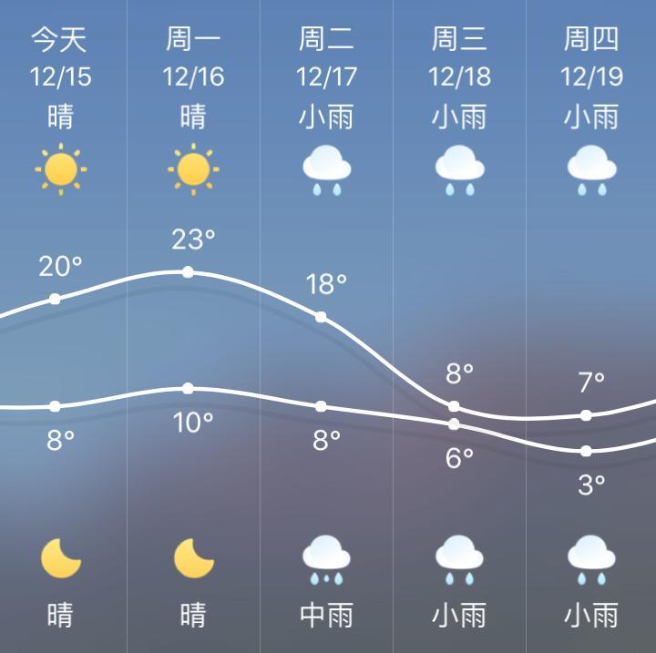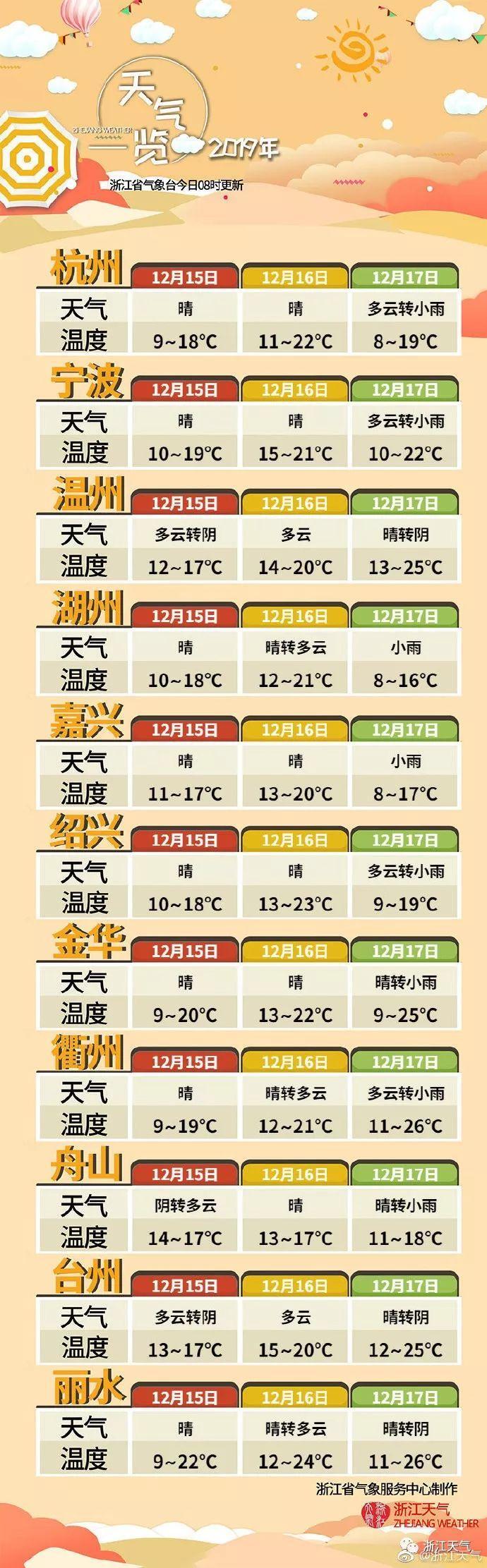 預(yù)計未來三天,浙江天氣主基調(diào)仍是“晴暖”,今天大部分地區(qū)最高氣溫21-23℃,其中16日、17日氣溫將撒開手腳上升,最高可達23-25℃。像杭州,在12月中旬超過20℃的情況極少,上一次出現(xiàn)是在2012年。此次氣溫沖刺即使不算破紀錄,也將是高于同期。不過晴穩(wěn)天氣霧霾高發(fā),昨日杭州空氣質(zhì)量之差直逼重度污染,各位應(yīng)盡量減少外出,外出時做好防范。