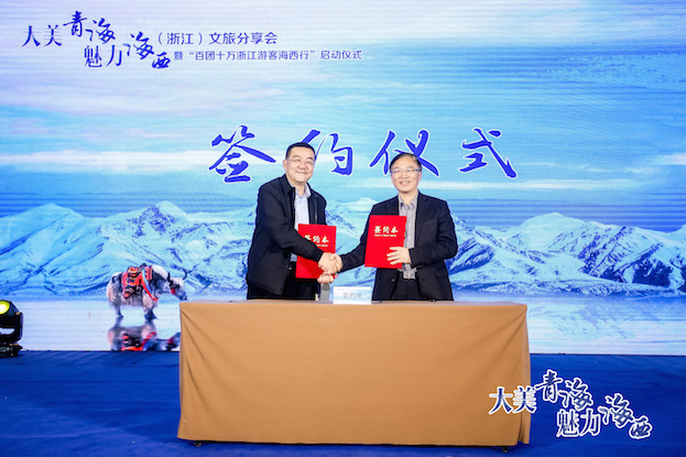 會(huì)上,浙江省文化和旅游廳、海西州人民政府就“兩地文化旅游戰(zhàn)略合作框架協(xié)議”簽約。而后隨著LED大屏幕中“掌印”亮起,“百團(tuán)十萬(wàn)浙江游客海西行”正式啟動(dòng)。海西州向浙江游客發(fā)出誠(chéng)摯邀請(qǐng),趁著景區(qū)免費(fèi),說(shuō)走就走,去發(fā)現(xiàn)意想不到的神奇海西。(記者 江玥)