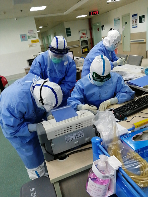 蔡文君和同事在工作(浙江第五批援助湖北醫(yī)療隊供圖)